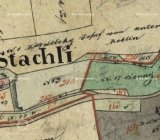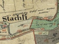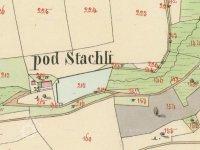Název Pod štachlí údajně od zatuchlé mouky, kterou zdejší mlynář dodával okolním lidem.
