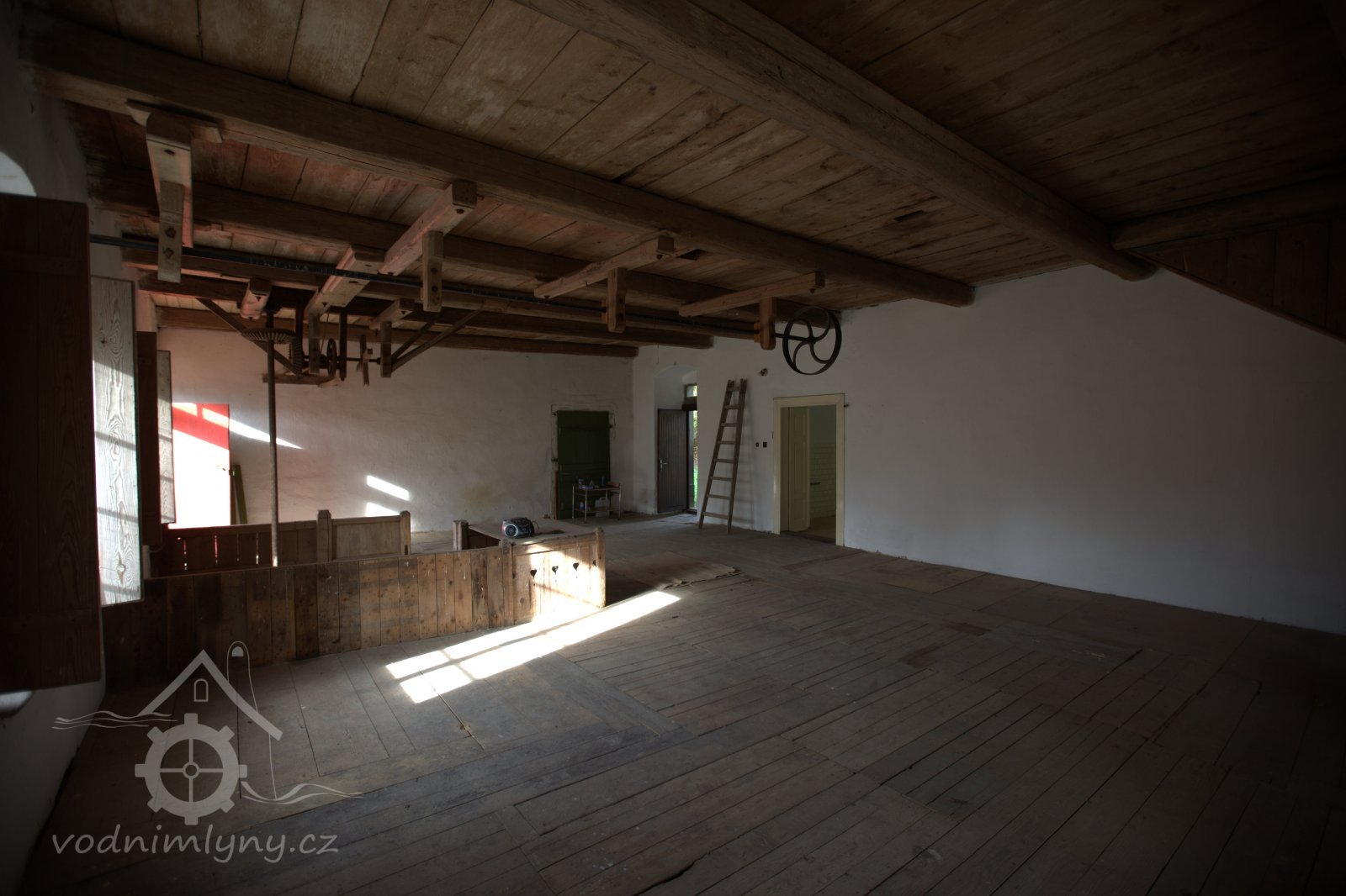 Z mlýnice vede subtilní transmise do přilehlé stodoly.