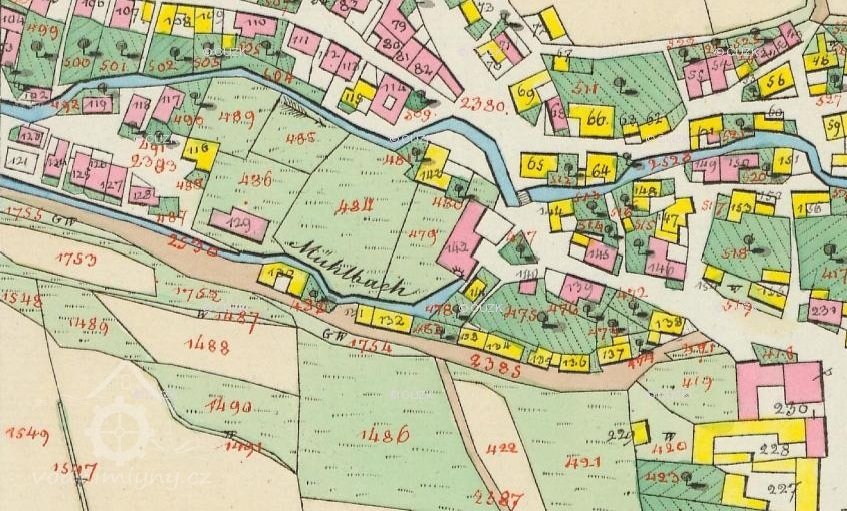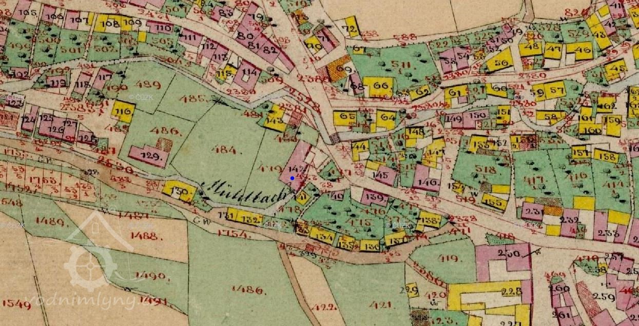 PopisPřed 1906 o dvou vodních kolech (kolo před mlýnem při přestavbě zaniká)