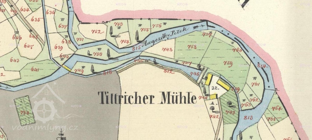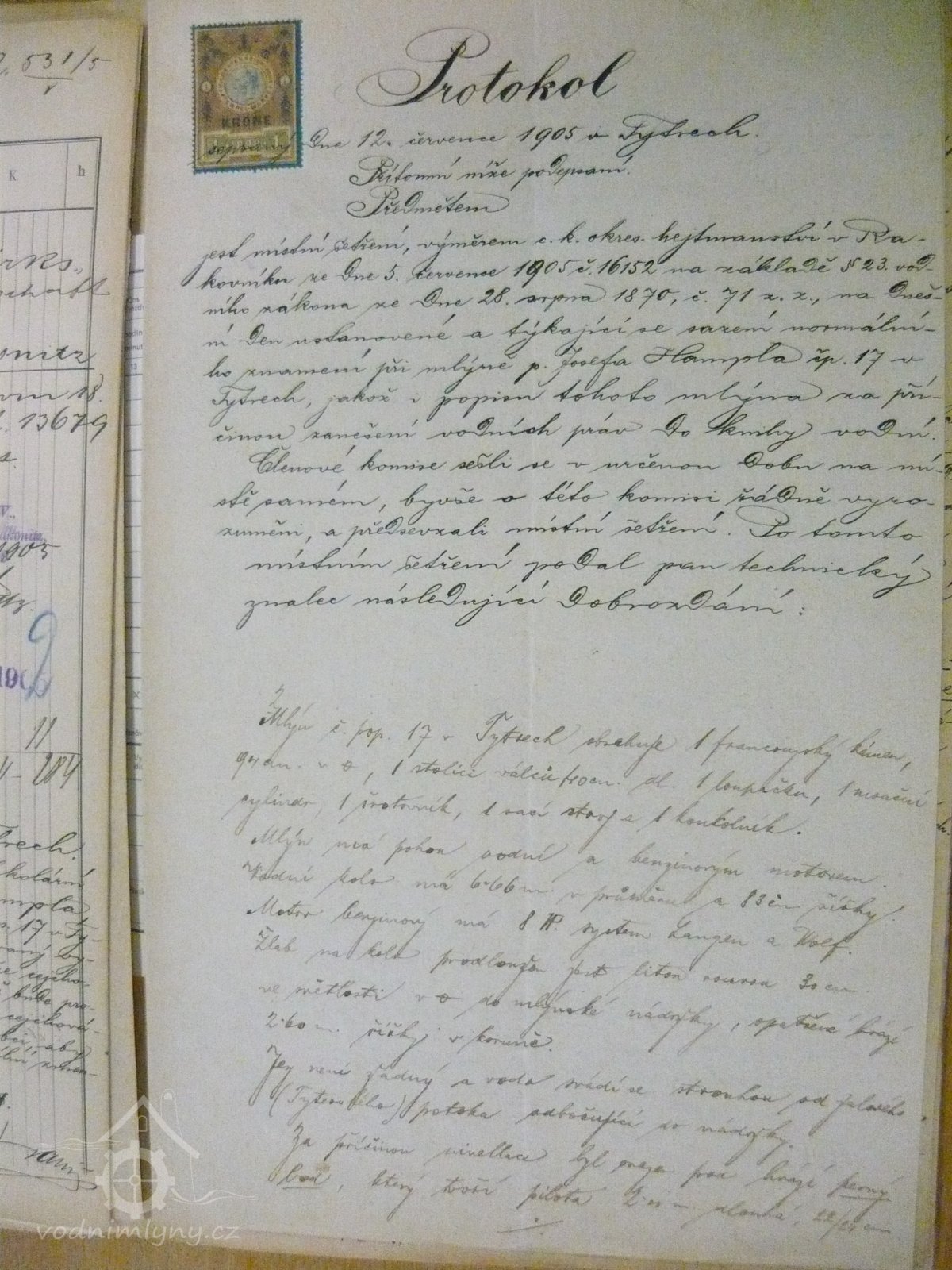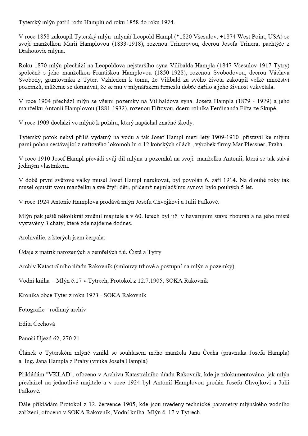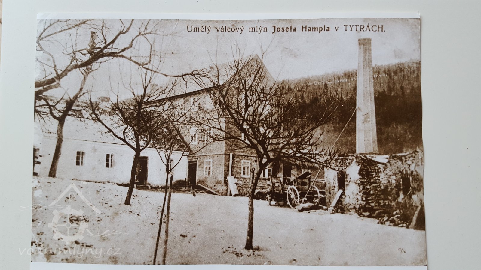 1909-1910 - Josef Hampl přistavěl ke mlýnu parní pohon, který sestával z naftového lokomobilu o 12 koňských silách. Výrobek firmy Mar. Plessner Praha. Toto opatření bylo proto, že Tyterský potok nebyl půříliš vydatný na vodu.
