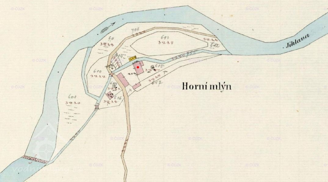 Mlýn stál v údolí řeky Jihlavy, byl zatopen vodou vodní nádrže Mohelno, zprovozněné v roce 1977.