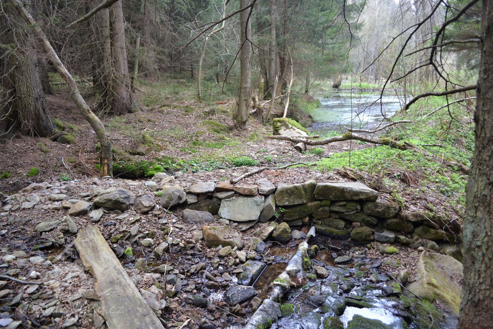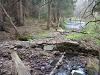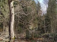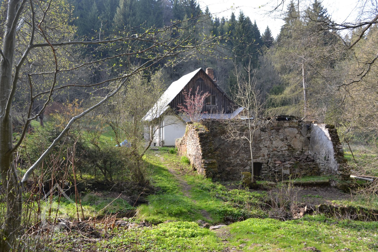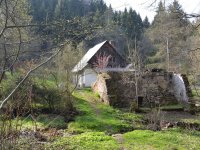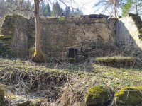 Částečně zřícený objekt mlýna v kaňonu Růžďského potoka v lokalitě V Růždí obklopený zajímavými skalními útvary dotvářejícími tajemnou romantiku místa.