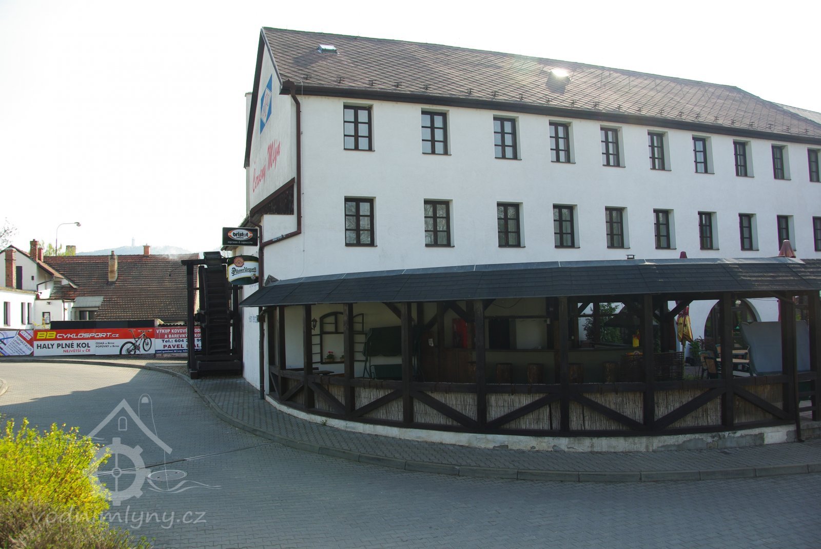 Mlýn přestavěný na penzion stojí na okraji Tišnova u hlavní komunikace, které musela obytná část mlýna ustoupit při její výstavbě.