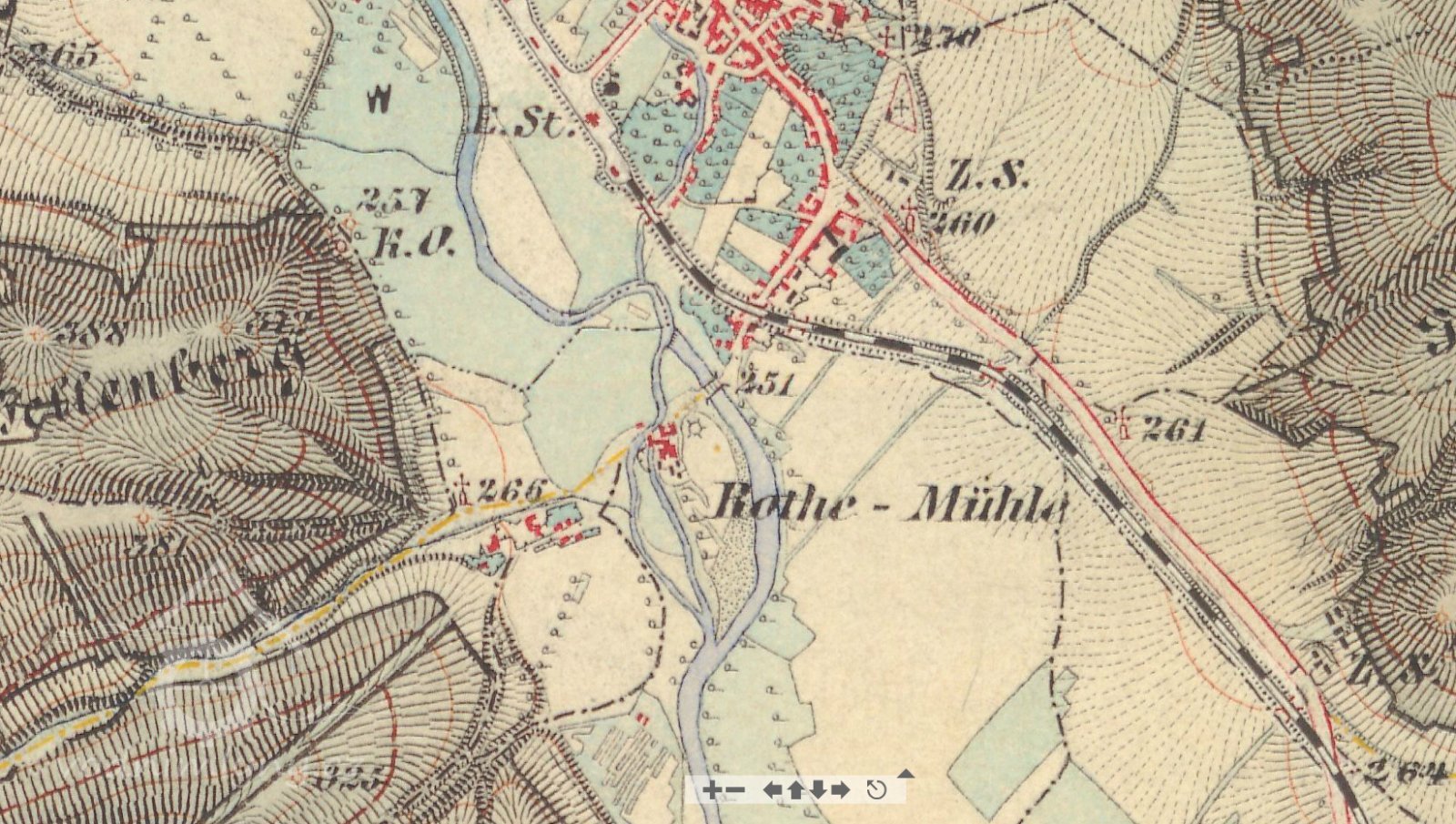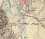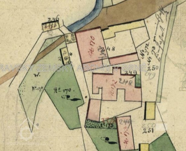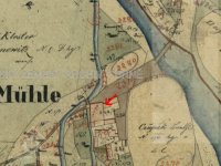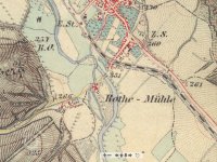 Na historických mapách je zakreslen náhon, který v současnosti neexistuje.