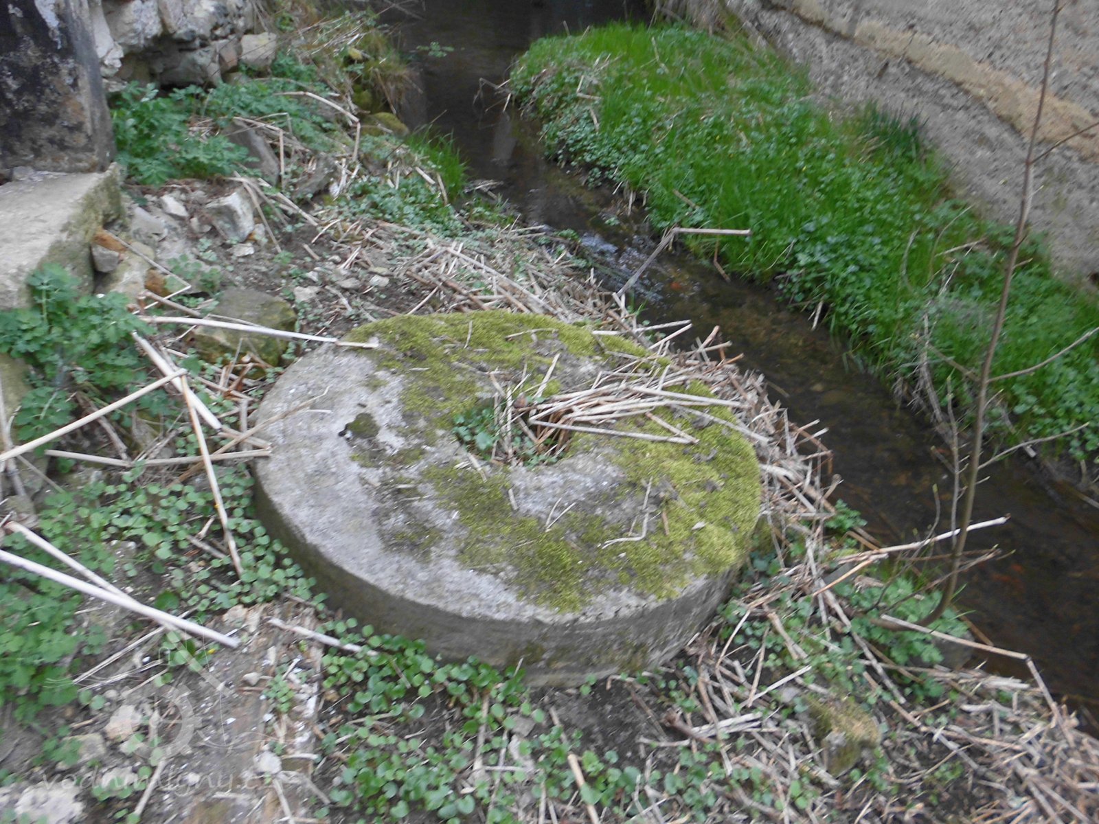 mlýnský kámen u odtokového kanálu, 2014, © Veselý, (Prvky na obrázku: mlecí kámen)