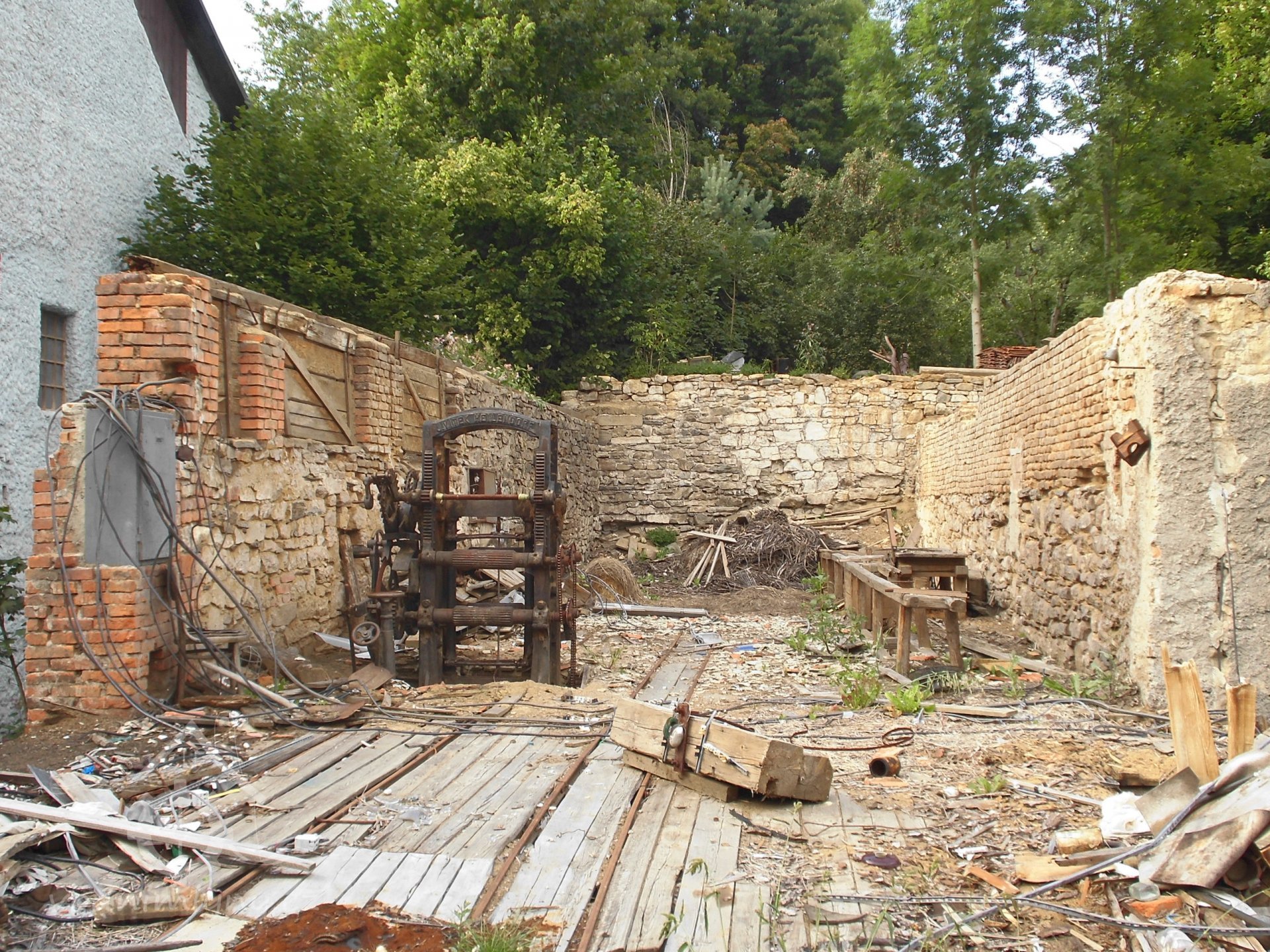 kamenné složení, 2014, © autor neznámý, (Prvky na obrázku: kamenné složení (šrotovací, mlecí), zásobník, násypka)