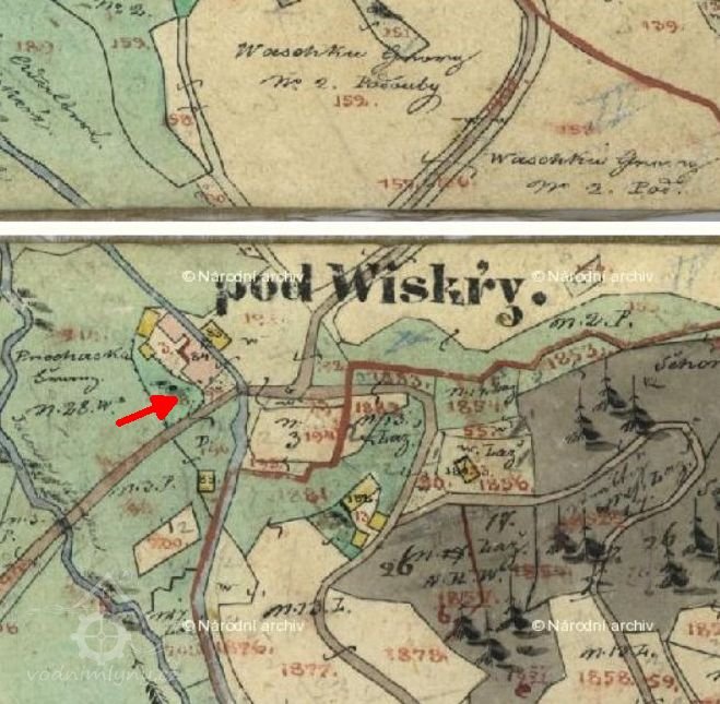 1834 obnovena emfyteutická smlouva, k mlýnu náležel 1 ha pozemků