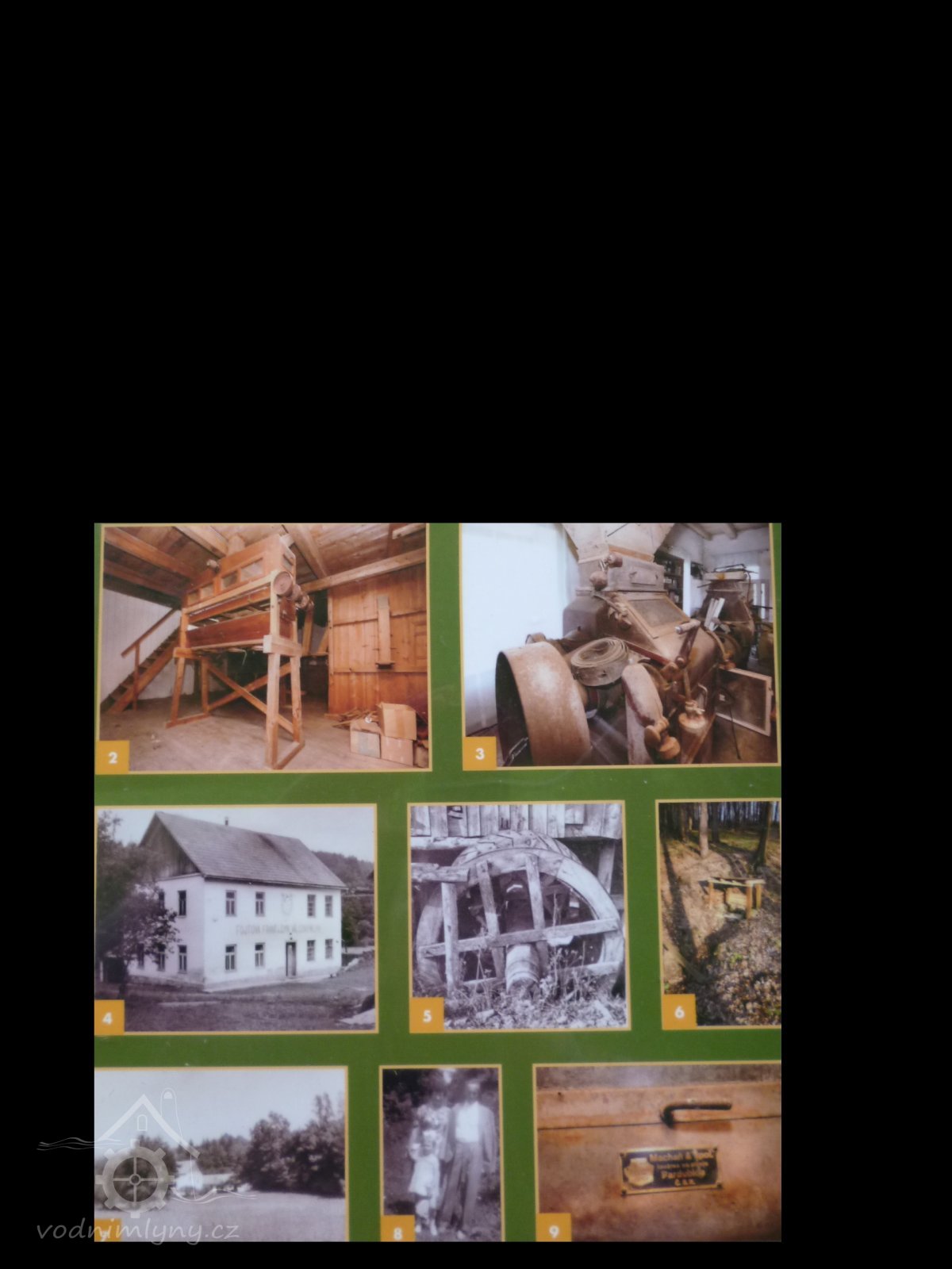 PopisV roce 1930 měl mlýn 1 kolo na vrchní vodu, hltnost 0,104 m3/s, spád 4,35 m, výkon 4 HP