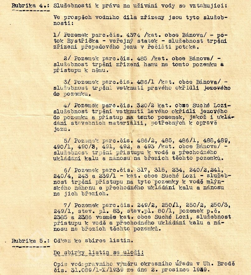 r. 1979 - manželé Josef Velecký a Františka Velecká odstoupili svoji polovinu mlýna č. 33 manželům Martinovi Veleckému narozenému r. 1934 a Věře Velecké narozené r. 1938