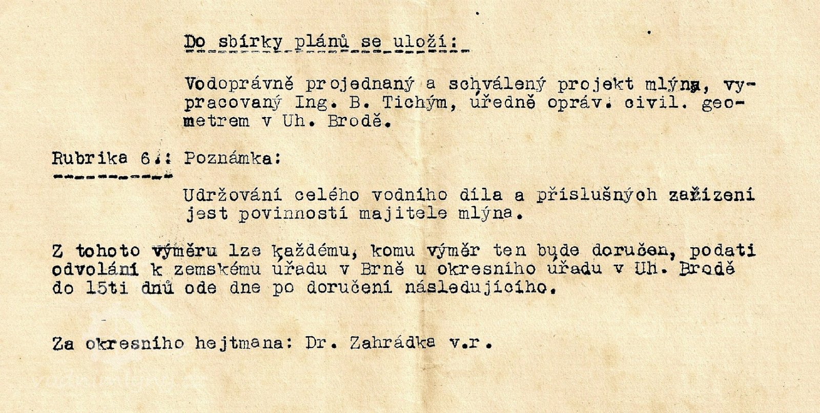 5.12.1941 - mlýn č. 33 německými úřady uzavřen, zaplombován a úředně zapečetěn