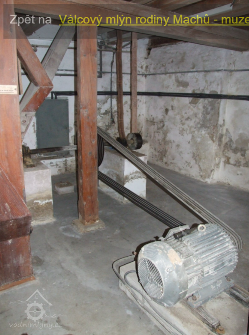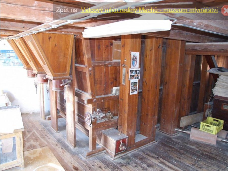 Mlýn z 19. století vlastní rodina Machů od roku 1914. V roce 1942 nechal Josef Machů mlýn rozšířit, strojní zařízení doplnil o plynosací motor. Roku 1951 byl válcový mlýn zařazen do hospodářského družstva, později byl provoz zastaven. V roce 1991 syn posledního majitele provoz mlýna obnovil a zpracovává v něm obilí na všechny druhy mouky. V přízemí třípatrové budovy jsou hnací stroje, transmisní rozvod, násypky dopravníků a kartáčovačka. V prvním patře je loupačka, mlecí stolice, váha a pytlování. Ve druhém patře jsou sila, čistička, vysévače, reforma a prachové filtry. V posledním patře je podstřešní transmisní pohon a hnací zařízení zrnových výtahů. Fasáda mlýna má cihlovou barvu.