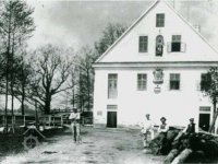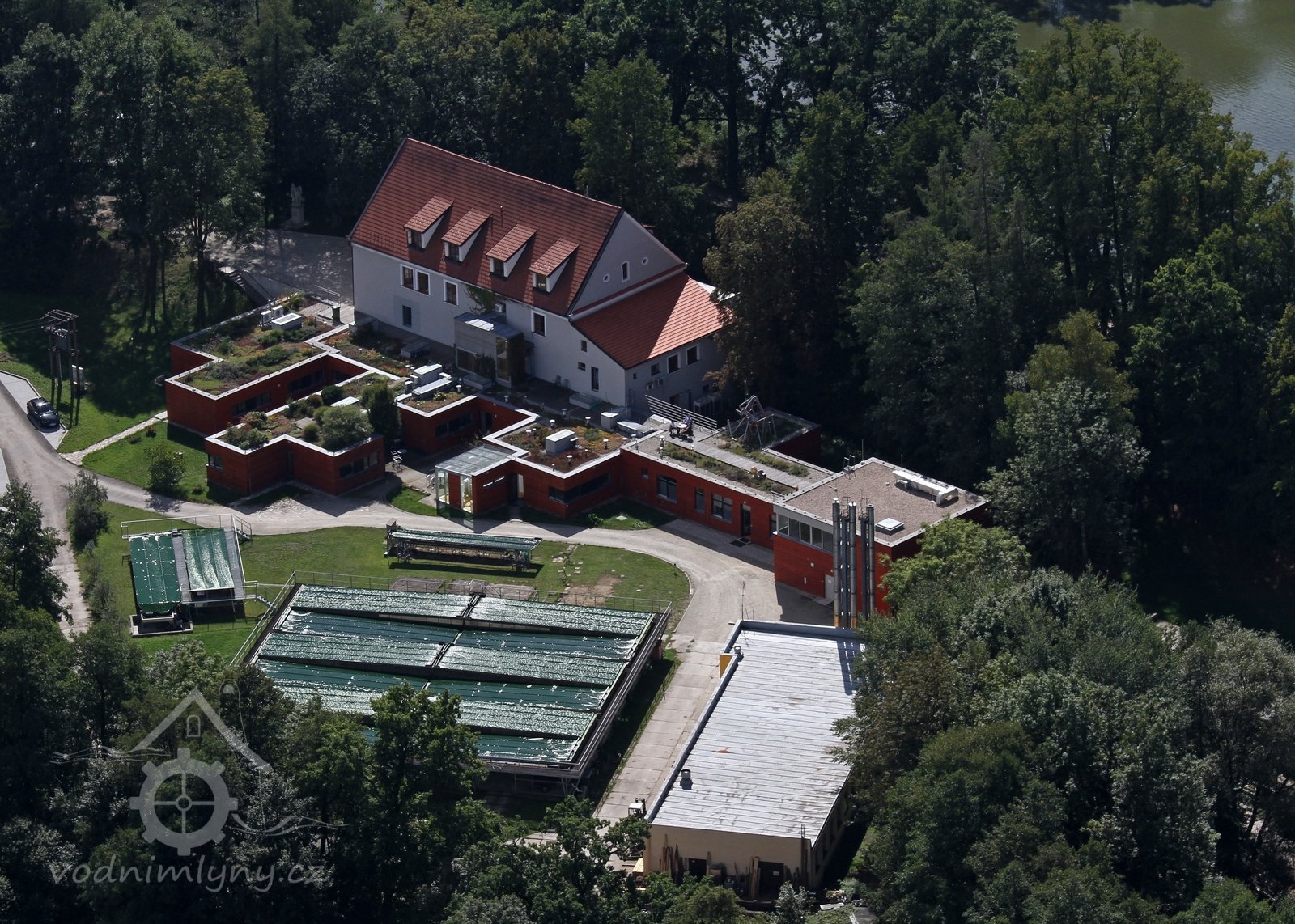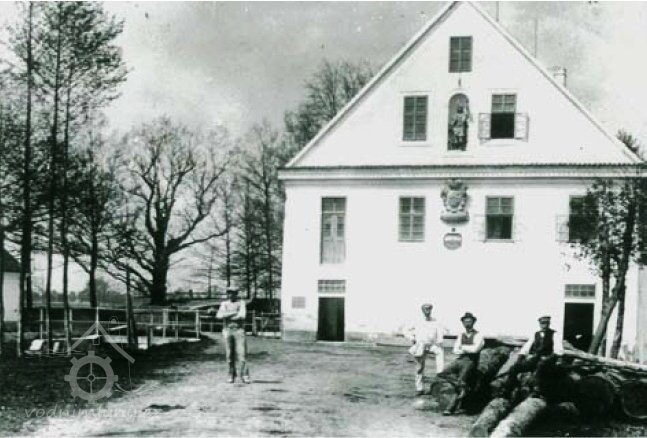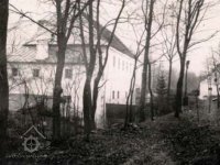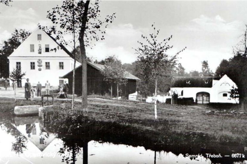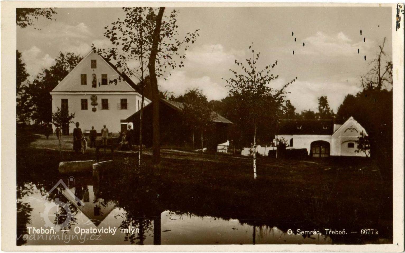 mlýn z jihozápadu; vzadu je vidět část přistavěného domku, cca poč. 20. st., © foto archiv rodiny Břeských, z publikace R. Novákové "Opatovický mlýn na Zlaté stoce u Třeboně"