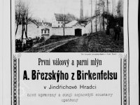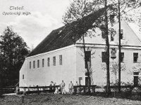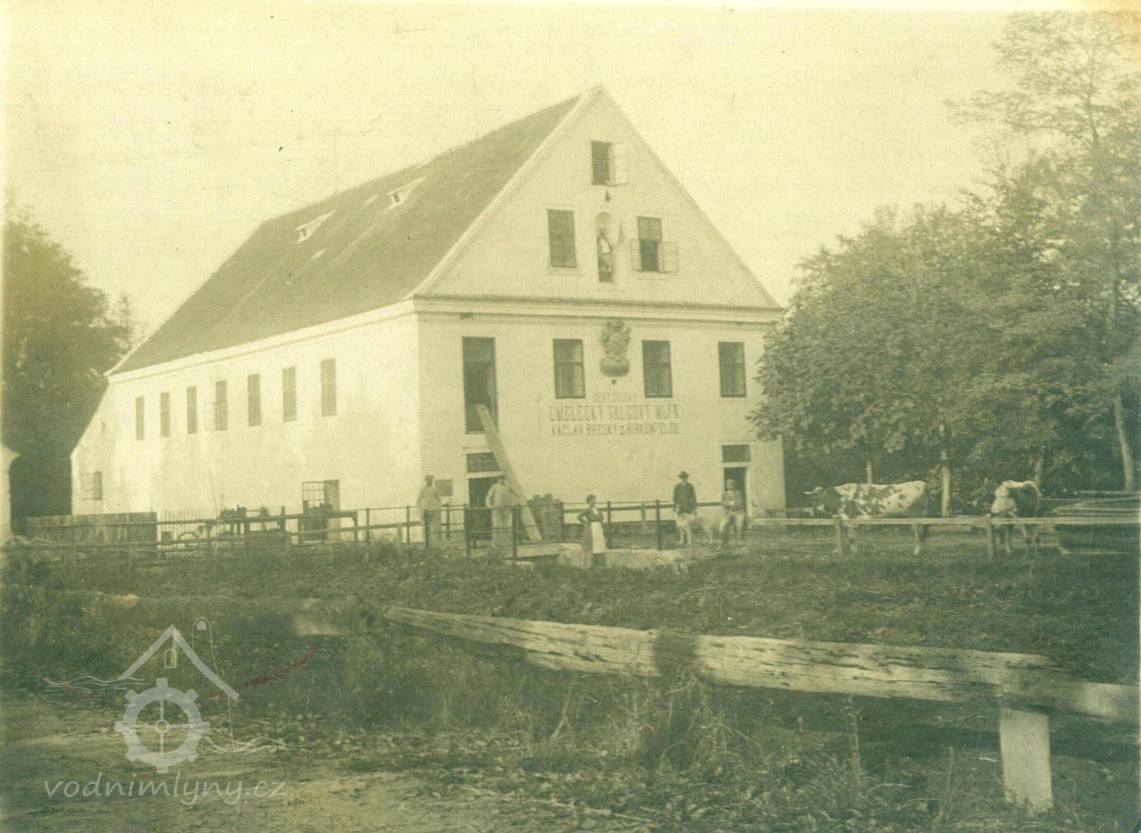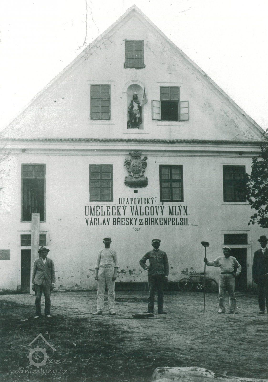 hlavní, jižní průčelí s nápisem "Opatovický umělecký válcový mlýn, Václav Břeský z Birkenfelsu", cca poč. 20. st., © z archivu rodiny Břeských (Vojtěšky Försterové)