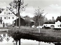 mlýn po přestavbě; vpředu zbytky zbořené pily, 1960-62, © Karel Skopal st., z publikace R. Novákové "Opatovický mlýn na Zlaté stoce u Třeboně"