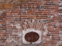 Při přestavbě objevená starší okno a větrací otvory v severním štítě mlýna, 2015, © Ondřej Prášil, (Prvky na obrázku: okno, plastická omítková výzdoba fasád a štítů)