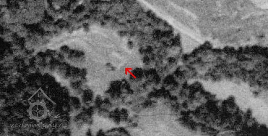 Obrys budovy mlýna je ještě patrný na leteckém mapování z 50. let. (RŠ)