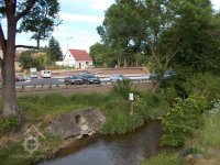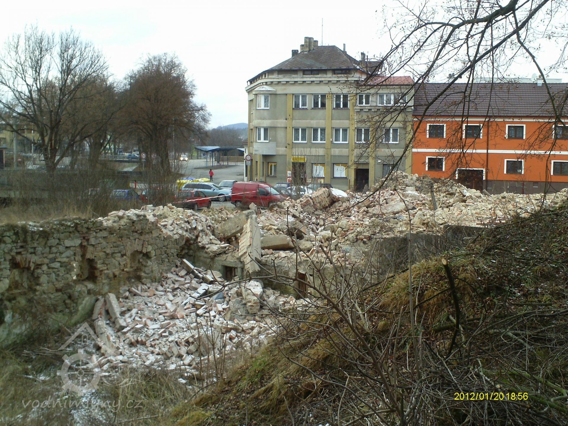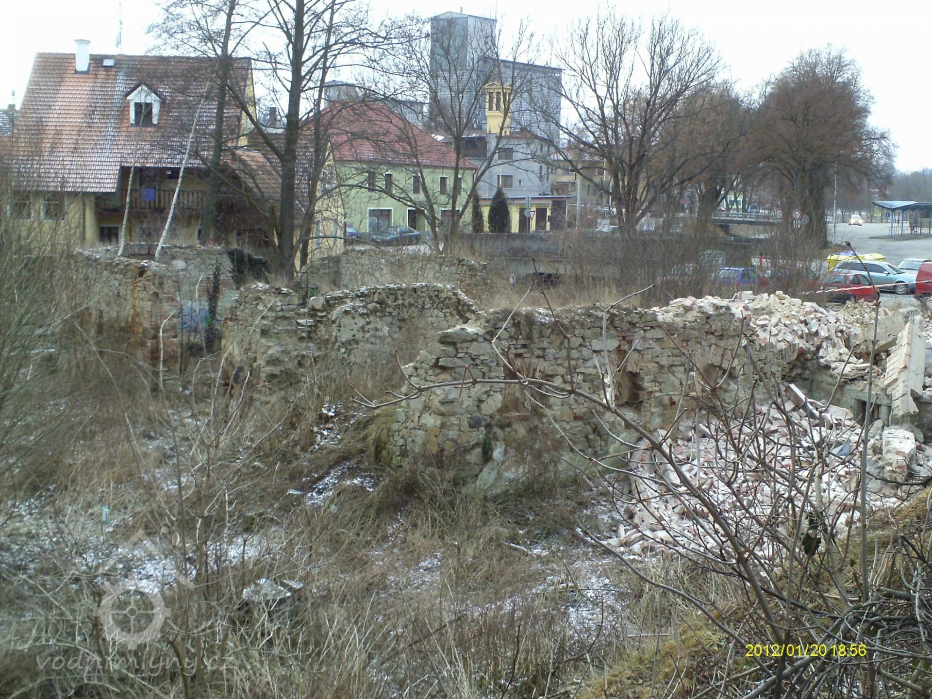 * před mlýnem prostranství, pod okny zahrádka, od mlýna vlnitá pěšina do průchodu v Novém městě + dále k mlýnům podle strouhy (= náhonu)