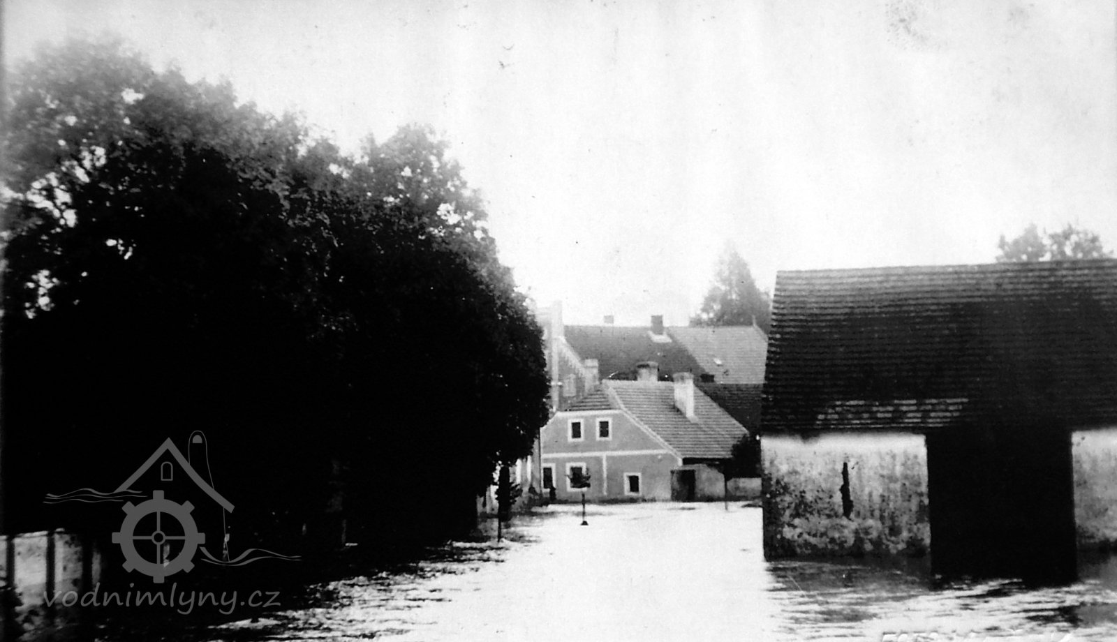 "Při zátopách stojí Kolínův mlýn vždy první v cestě přívalu vod a utrpí vždy značnou škodu. Proto také Edv. Kolín žádal městský úřad (11. 7.), aby v úseku od mostu na tržiště až k silnici do Měchova byl srovnán oblouk, který tam řečiště tvoří, aby voda měla větší odpad."