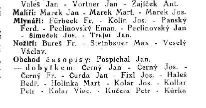 * Nové město, dům č. 21 p. Malého - 1920 tento dům po jeho smrti kupuje mlynář Fürbek, poté co prodal svůj mlýn p. Kolínovi