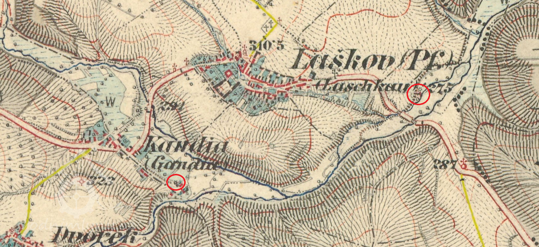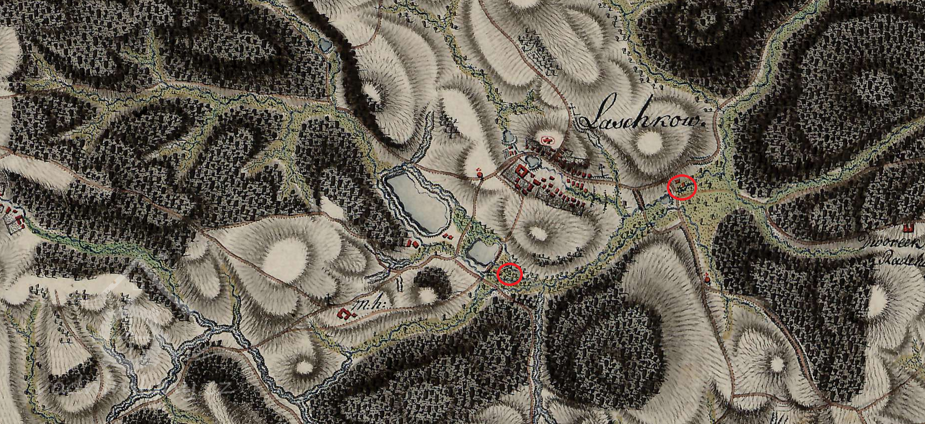 K roku 1638 jsou uváděny v Laškově 2 mlýny, pivovar, ovčárna, kostel a fara.