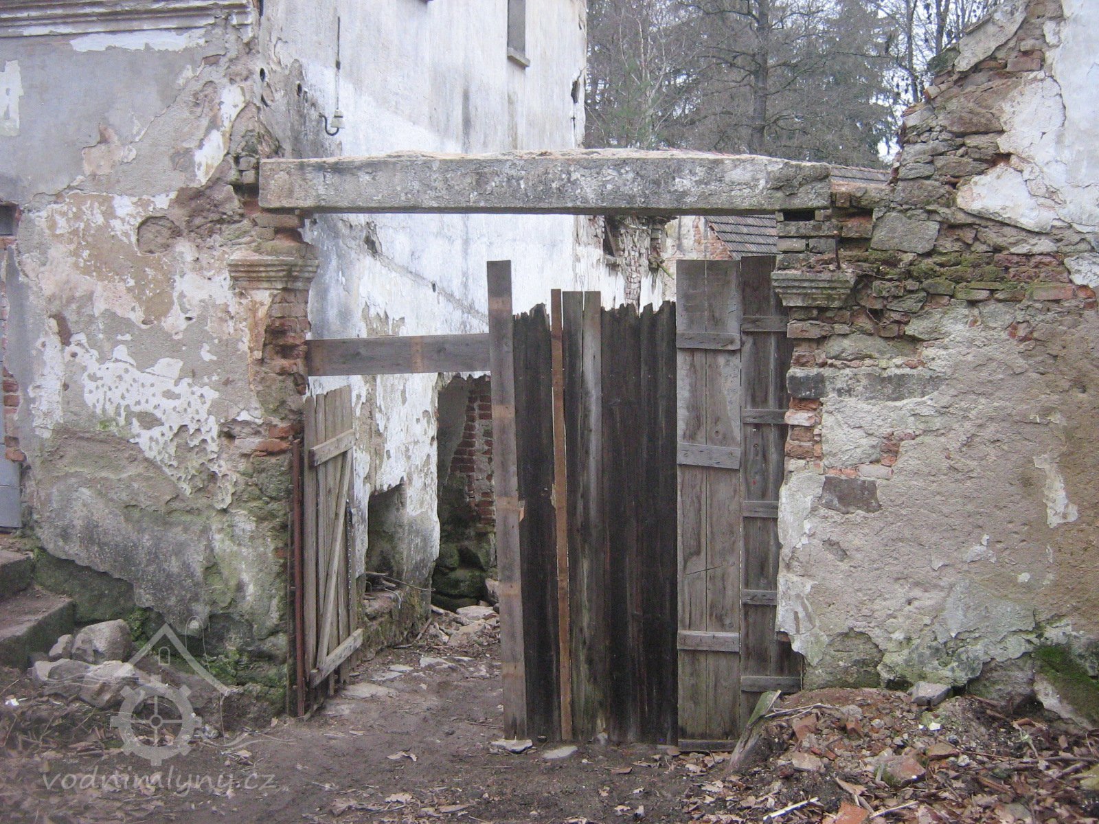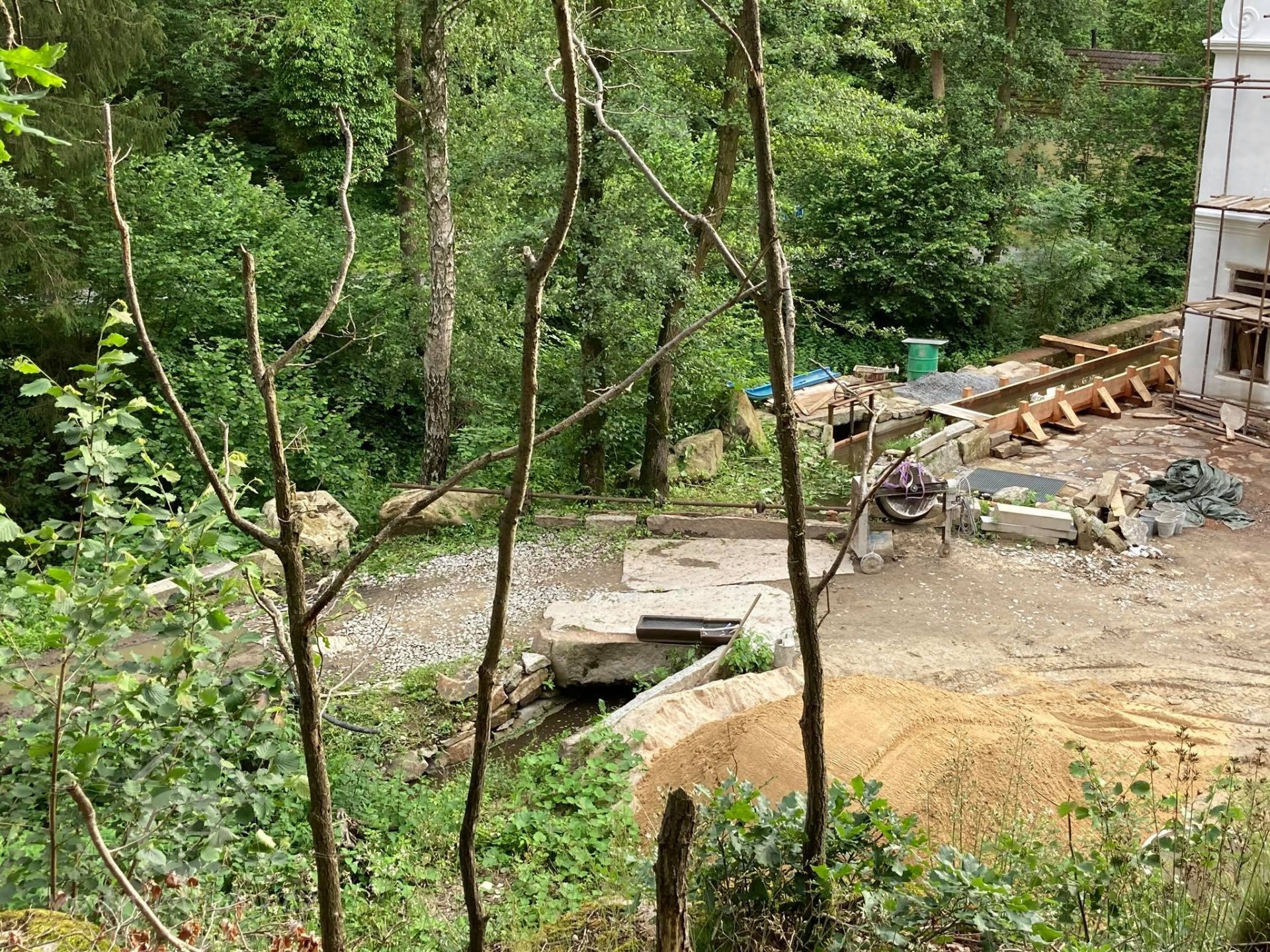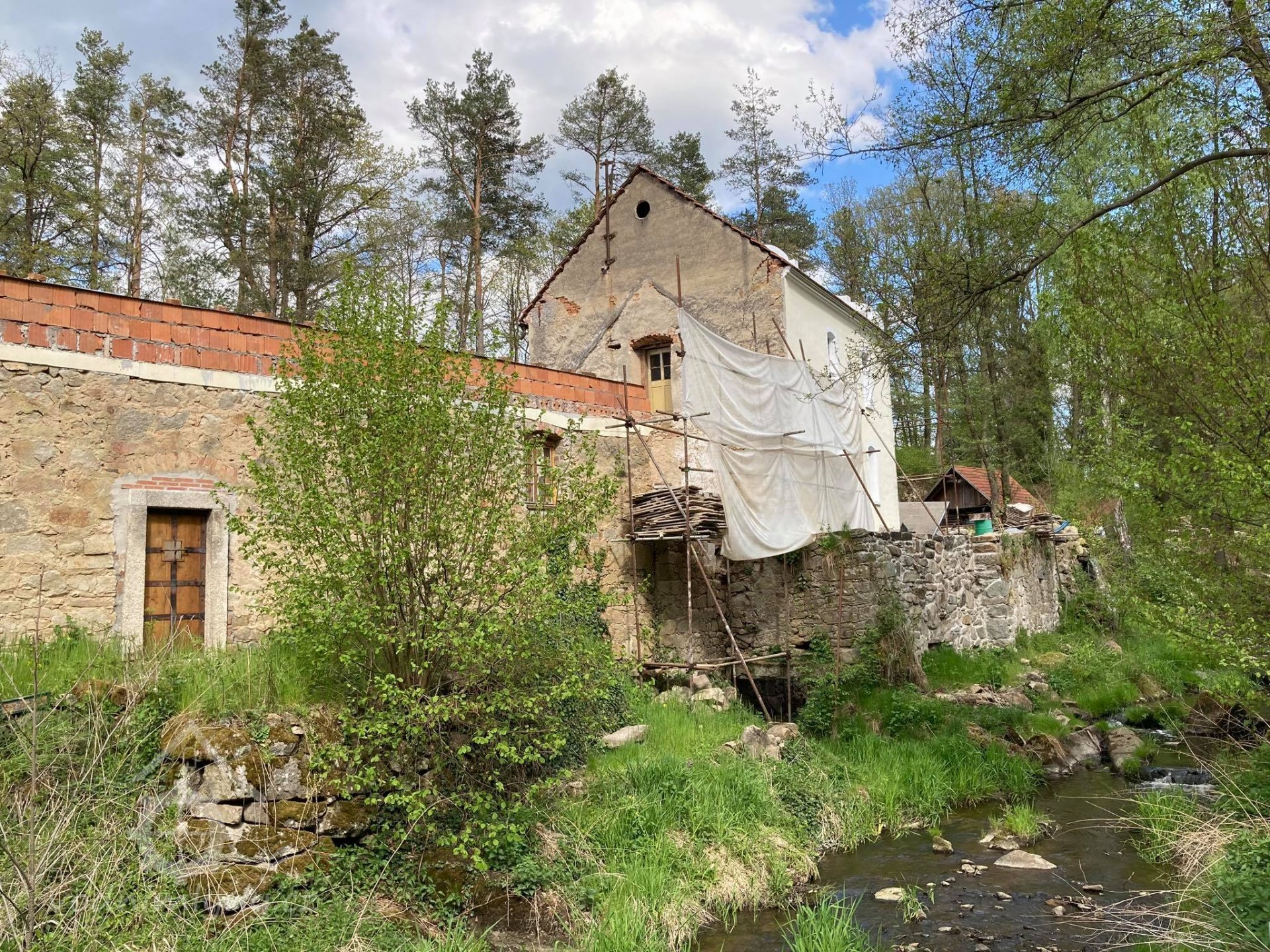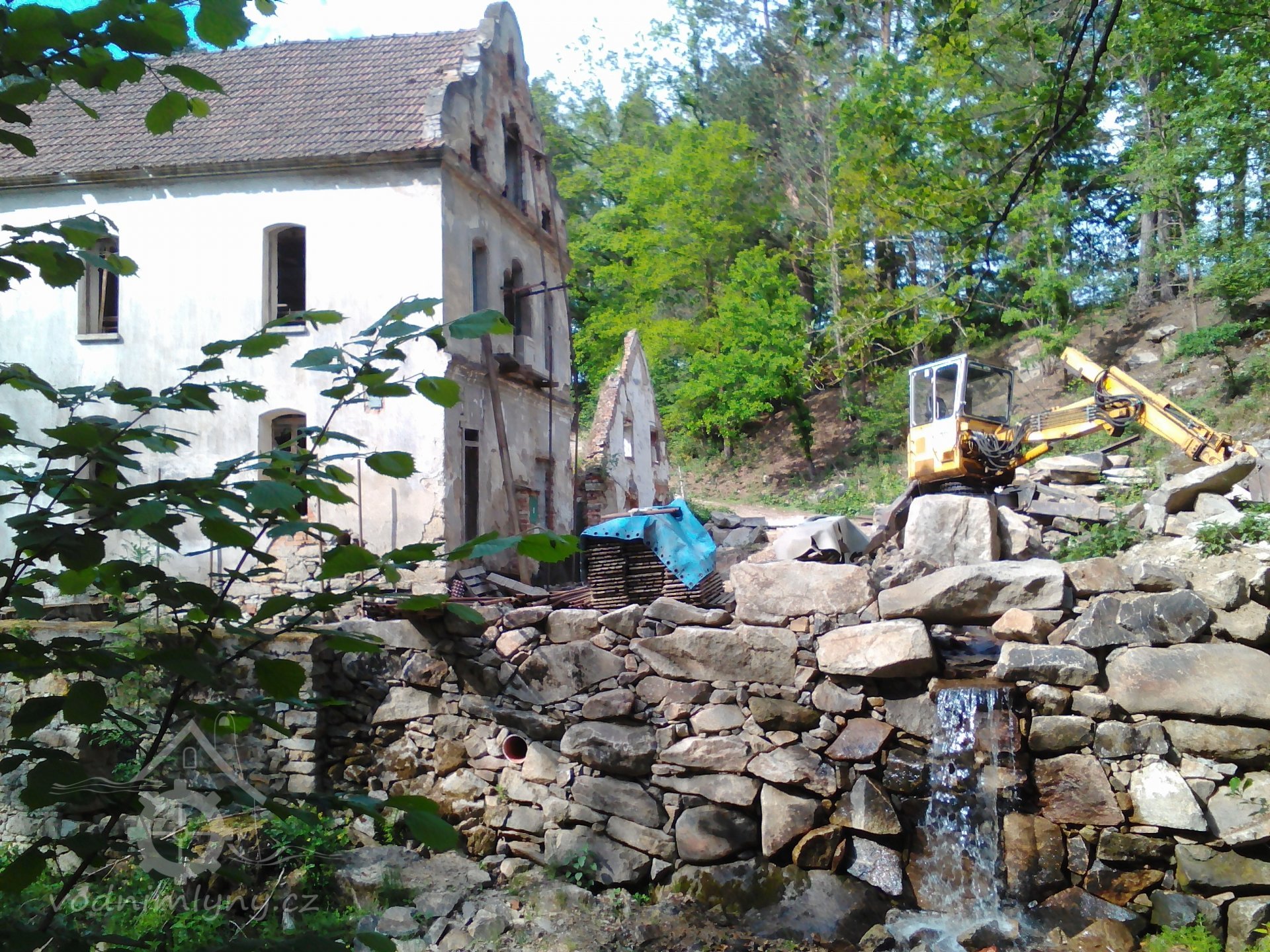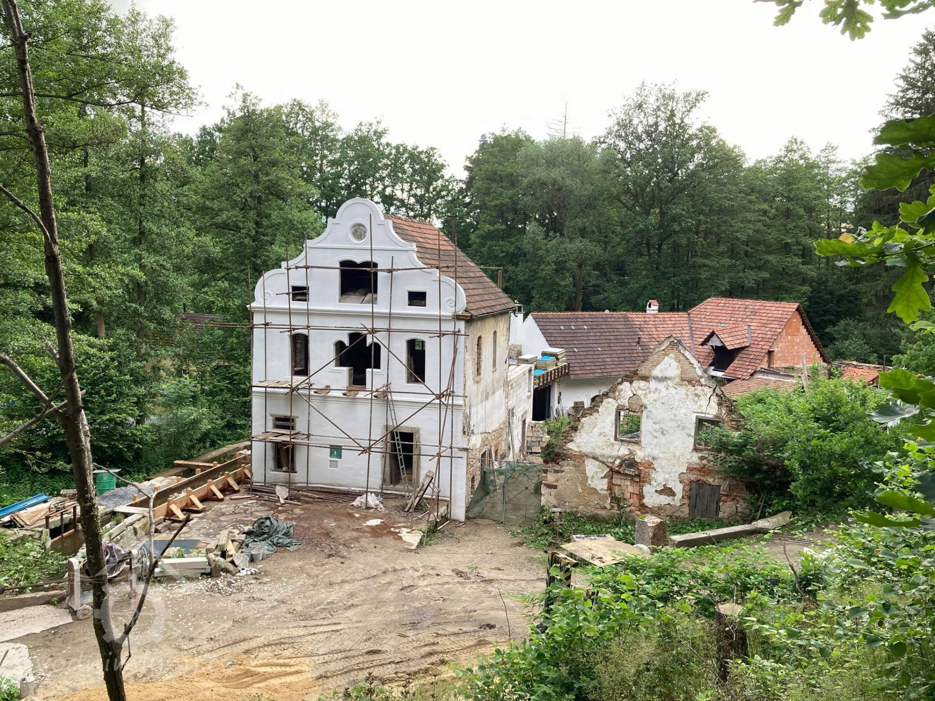 nový věnec, příprava na rekonstrukci další části mlýna ? (vpravo mlýnice), 4/2019, © PK