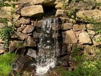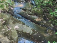 detail obnoveného jalového žlabu s vodopádem zpět do potoka, via FB edit PK, 5/2020, © Růžena Jakubíková, (Prvky na obrázku: náhon, jalový žlab)