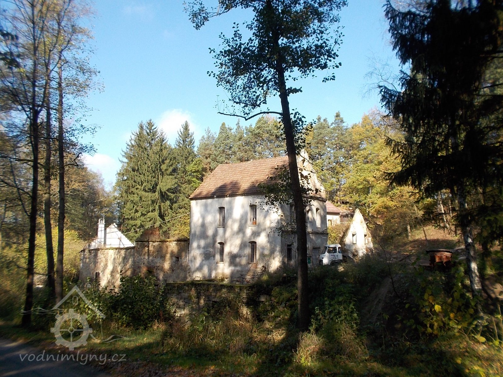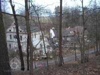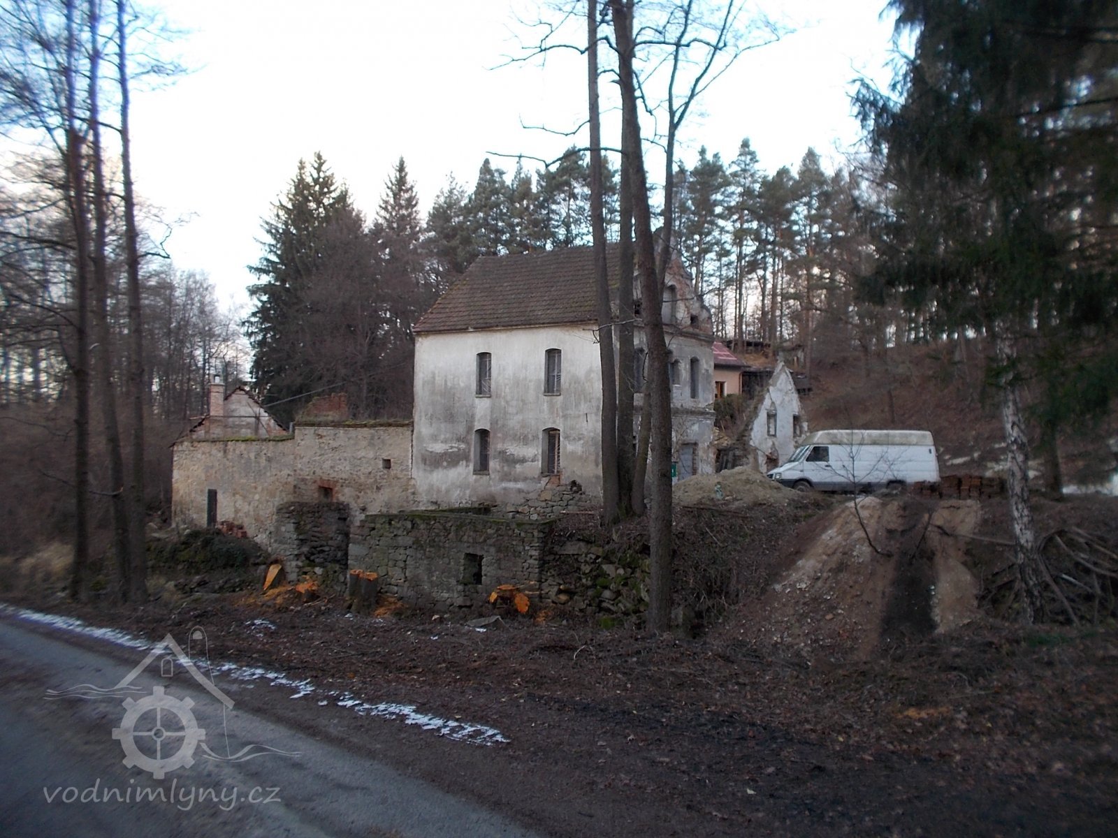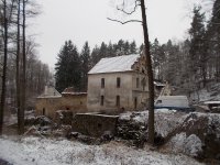 pohled na celý areál mlýna z bývalé staré cesty směrem ke Kudrlovu hamru pod Rejty, 12/2016, © PK