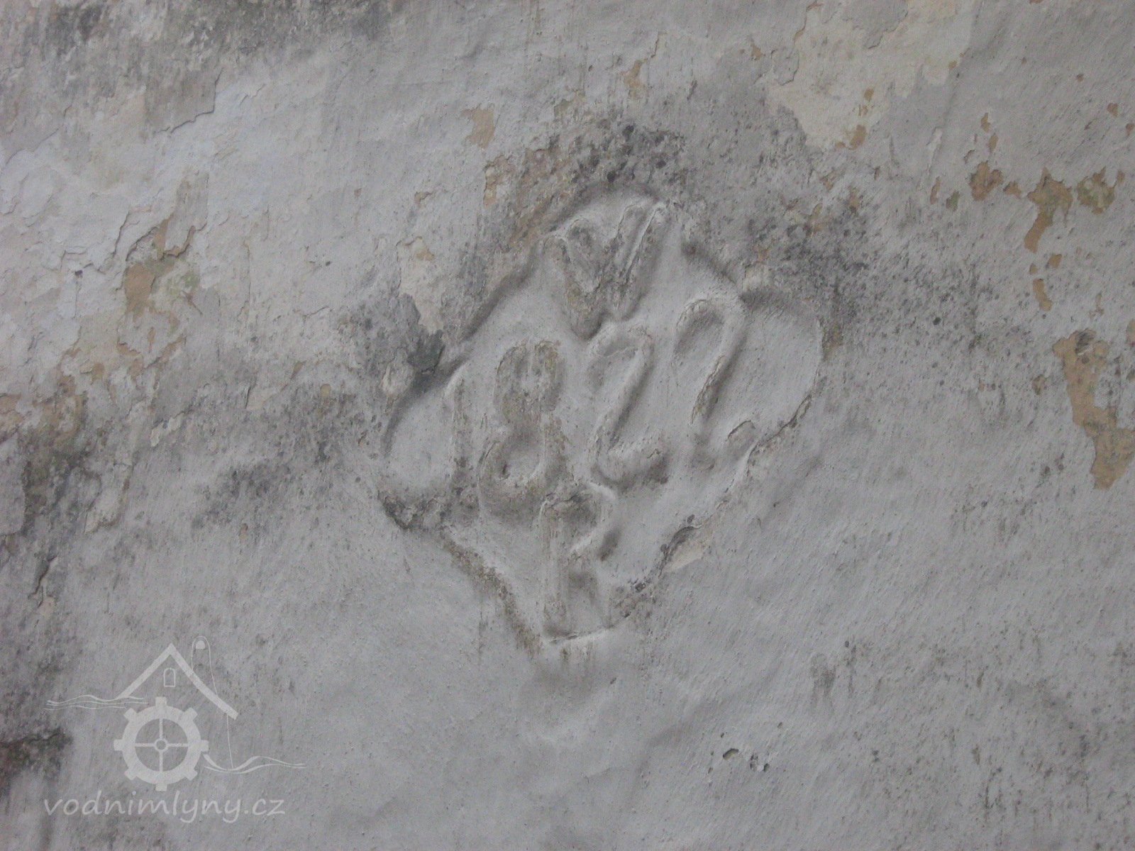 detail vročení s iniciálami, XII: 2011, © Kozel, (Prvky na obrázku: epigrafické památky (nápisy, datování aj.))