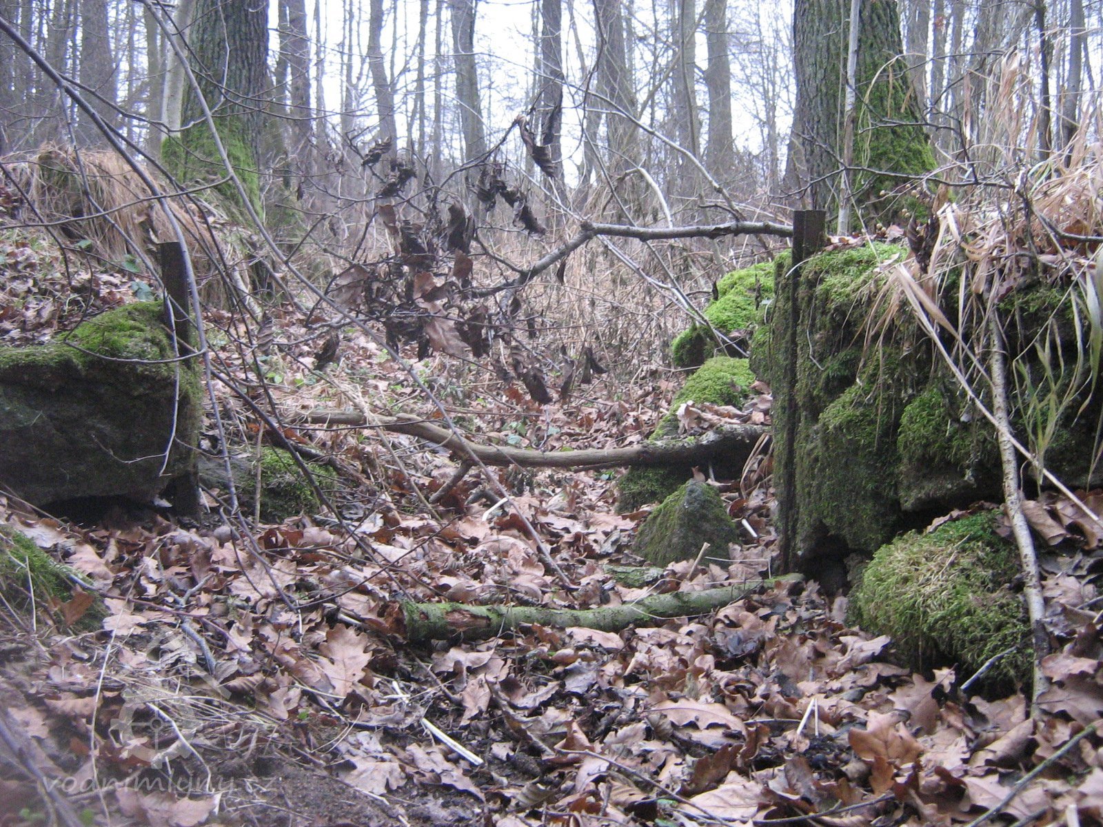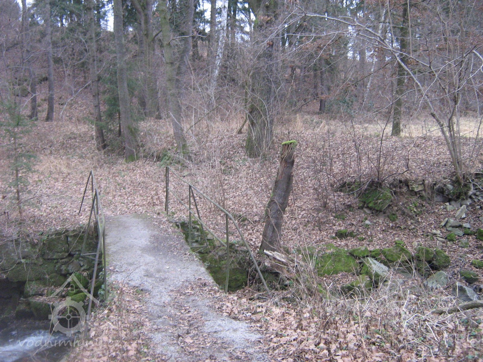můstek přes potok k mlýnu - dnes neprůchodný, XII: 2011, © Kozel