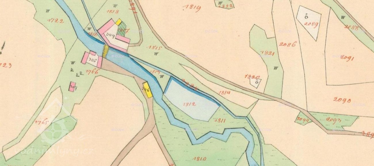 Mlýn na pohlednici před r. 1918., před 1918, © autor neznámý