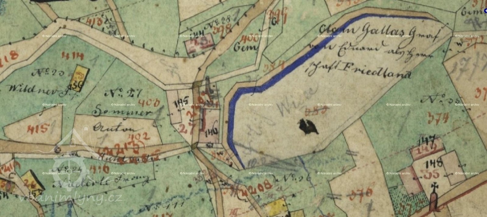 Císařský povinný otisk, výřez, 1843, © viz archivnimapy.cuzk.cz