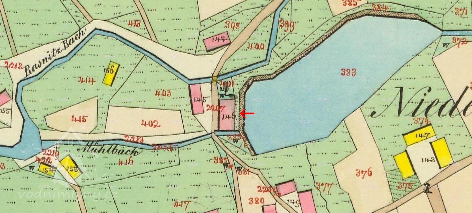Indikační skica, výřez, 1843, © viz archivnimapy.cuzk.cz