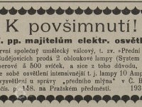 poznámka 1 - Josef Havlíček koupil Přední mlýn dne 11. listopadu 1927. Jako správce působil ve mlýně od roku 1924, přičemž zaměstnán byl ve mlýně již v době, kdy mlýn měli v nájmu bratří Zátkové (1915-1921). Jihočeské elektrárny musely vykoupit Přední mlýn a vodní právo na mlýně v roce 1926 v souvislosti s připravovanou regulací řek a stavbou Jiráskova bubnového jezu, ale mlýn provozovat nechtěly, takže jej hned prodaly. (PK - http://ceskobudejovicky.denik.cz/zpravy_region/josefa-havlicka-vyhnalo-z-predniho-mlyna-znarodneni-20120602.html)