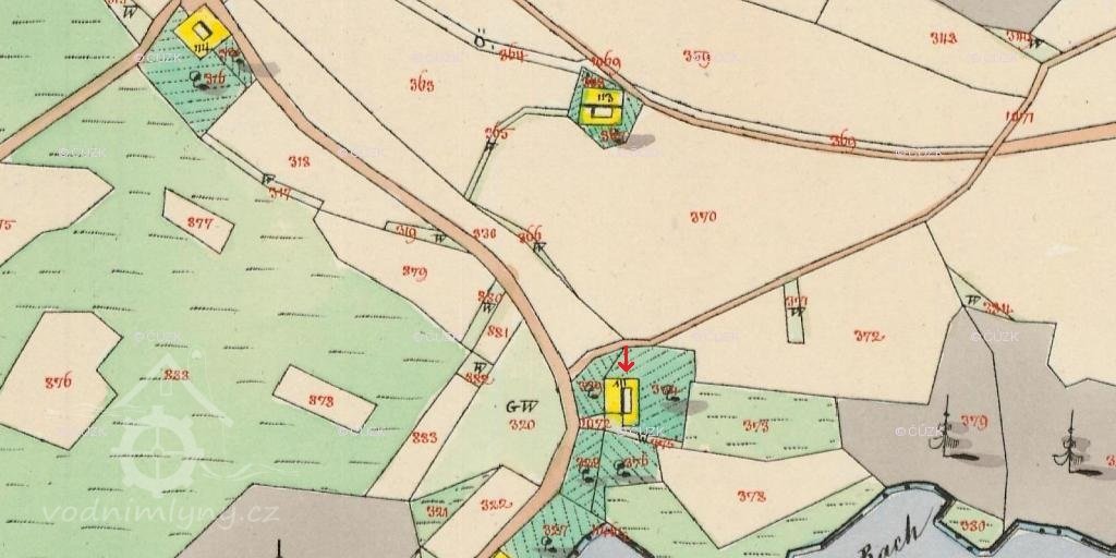 Roku 1766 koupil Josef Ječmínek chalupu s polem od svého otce Jakuba Ječmínka za 85 kop 42 gr 6 denárů. Od něho ji koupil 5. 3. 1771 Josef Kraulik za 197 kop 8 gr 4 denary. Závdavkem složil 171 kop 25 gr 5 den., zbytek splácel v ročních splátkách. Přídavkem k chalupě dostal : motyku, voškrt, mlynářský pytlík, násejpku a 2 slepice. Při živnosti byla také přistavěna kroupárna.