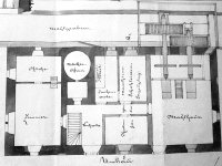 1883: přízemní budova se vstupní síní, z níž byla přístupná černá kuchyně a pec na chleba, vedle níž se nacházela stáj. V lévé části kuchyně a obytná místnost, v pravé mlýnice.