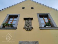 1) mezi okny kartuš s erbem Husmannů z Namedy