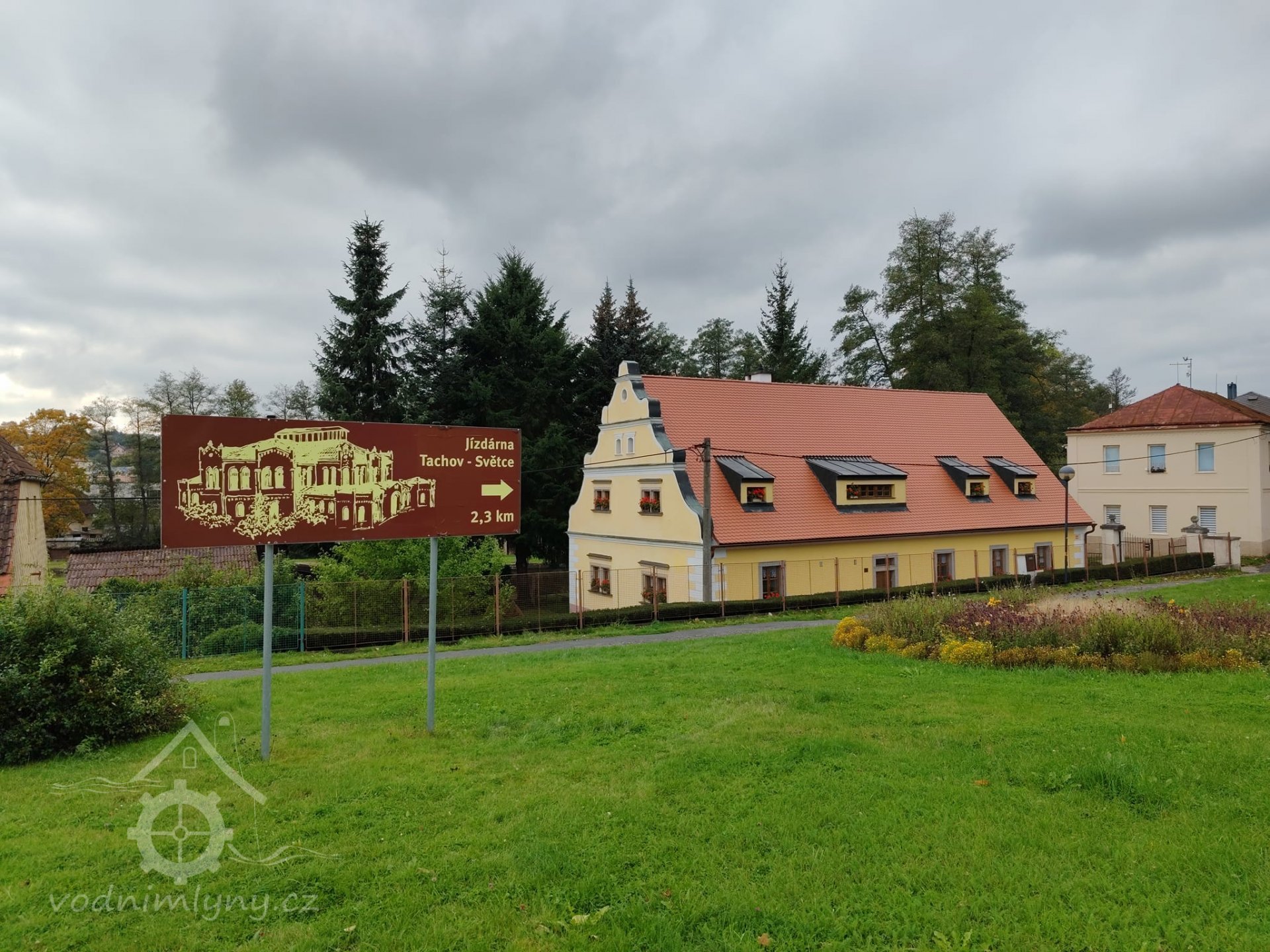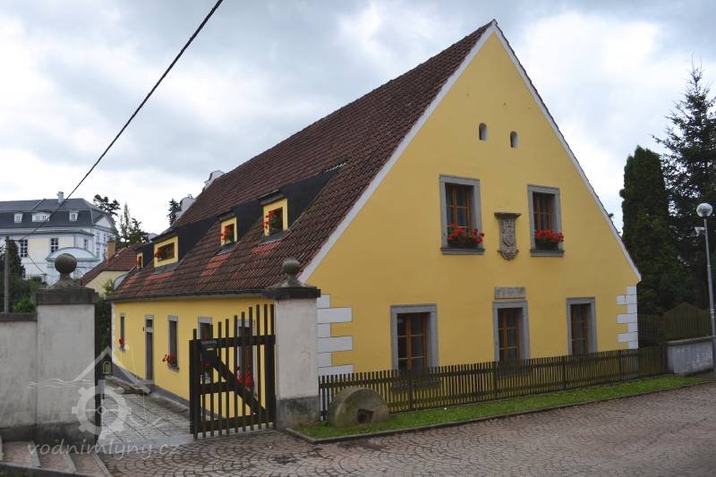 Opravený mlýn renezančního původu stojí nedaleko tenisových kurtů na břehu řeky Mže.