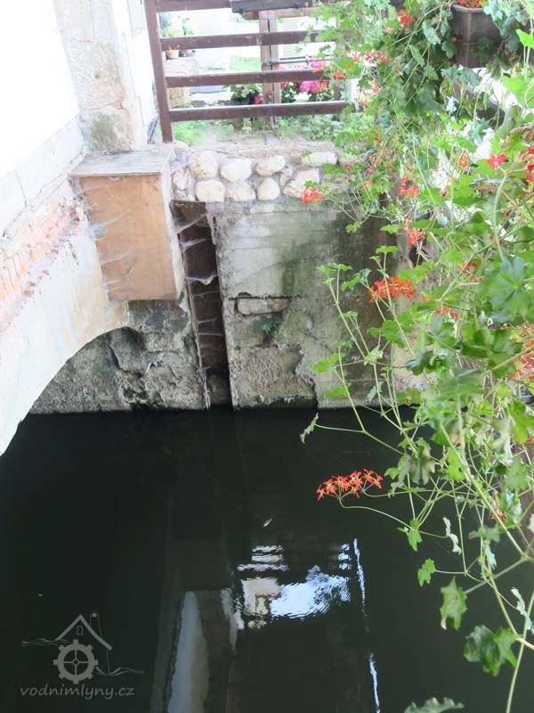 pohled na jz. stranu mlýnského náhonu., 08 2023, © Andrea Duchalíková, (Prvky na obrázku: náhon, stavidlo, turbínový domek)