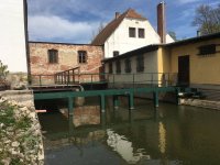 strojovna - exteriér, 08 2023, © Andrea Duchalíková, (Prvky na obrázku: náhon, stavidlo, turbínový domek)