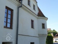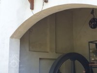 Plastická omítková výzdoba, okna, vyskladňovací otvor, schody, pavlač, 2014, © Ivo Peška, (Prvky na obrázku: okno, plastická omítková výzdoba fasád a štítů, pavlač, balkón, schodiště)