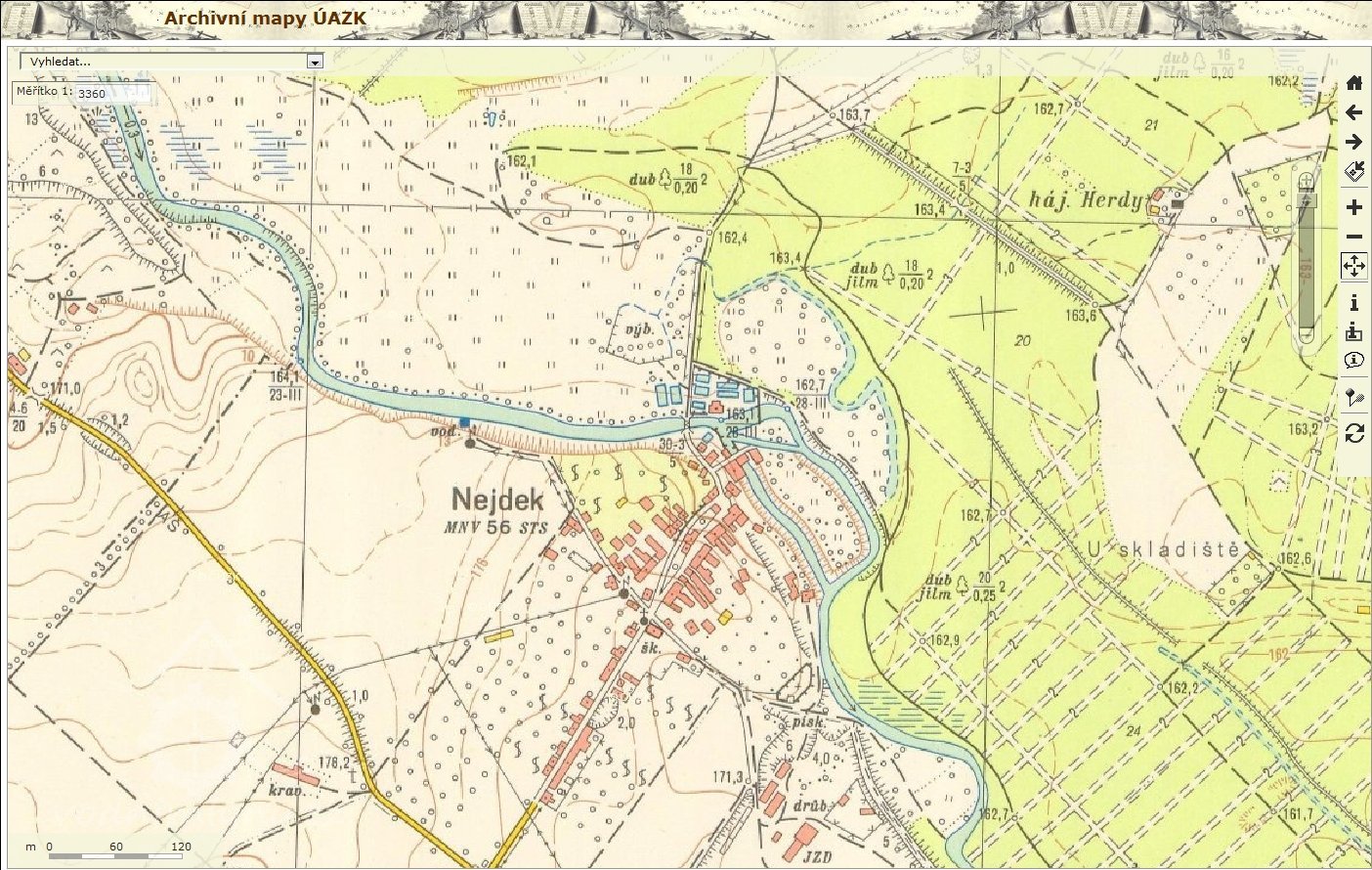 Mapa okolí mlýna, 1952, © historické mapy cuzk, TOPO S 1952