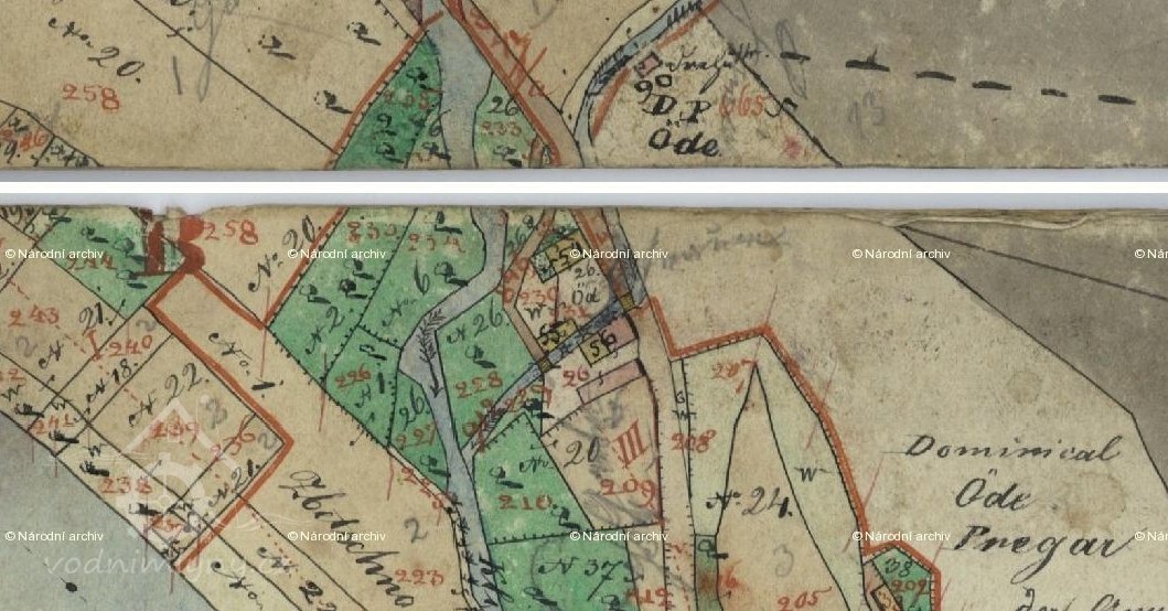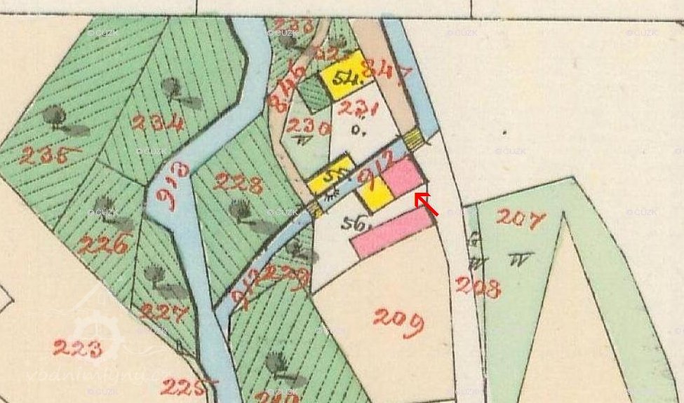 mlýn má jedno složení, při něm pila, 50 strychů polí, 1,5 věrtele zahrady a na jeden vůz sena louky