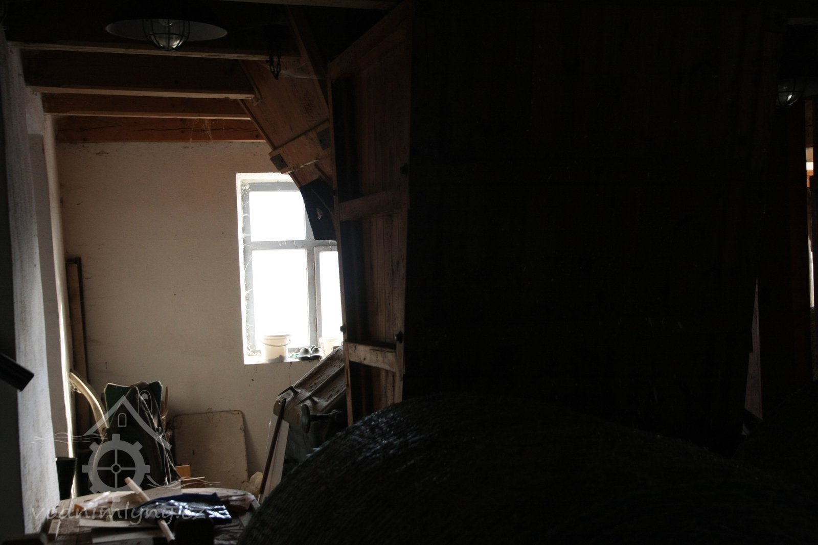 Detail řemenice v podstřeší, 2014, © Šimek, (Prvky na obrázku: transmise, řemenice, převody)