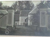 Pohled na mlýn ze dvora, 2014, © Šimek, (Prvky na obrázku: okno, plastická omítková výzdoba fasád a štítů, schodiště)