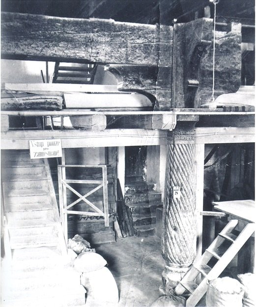 1550 (1551?) letopočet na hlavě dubového sloupu stropního průvlaku (dnes v hradní expozici), nejstarší datovaná dřevěná konstrukce mlýna v Čechách