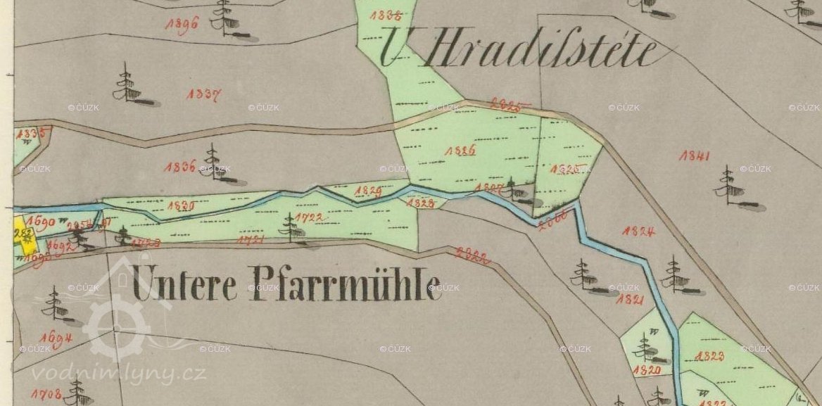 Mlýn postavený někdy před rokem 1771. Při selských bouřích, roku 1775, zde vzbouření sedláci údajně vypili faráři deputátní pivo.