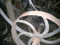 paleční kolo velké - čelní, 2013, © David Veverka, (Prvky na obrázku: transmise, řemenice, převody)