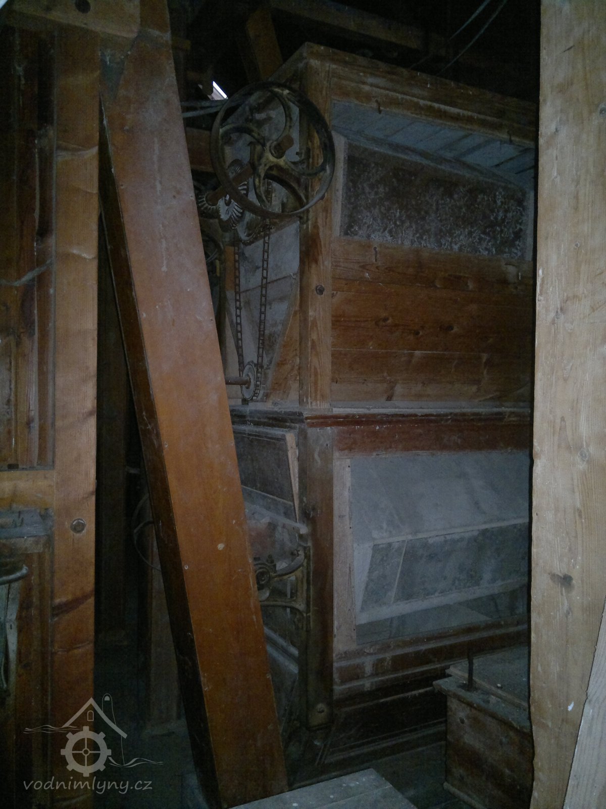 zde je vidět rotor - 6-ti boký hranol se síty moučného vysévače, 2013, © David Veverka, (Prvky na obrázku: vysévač hranolový)