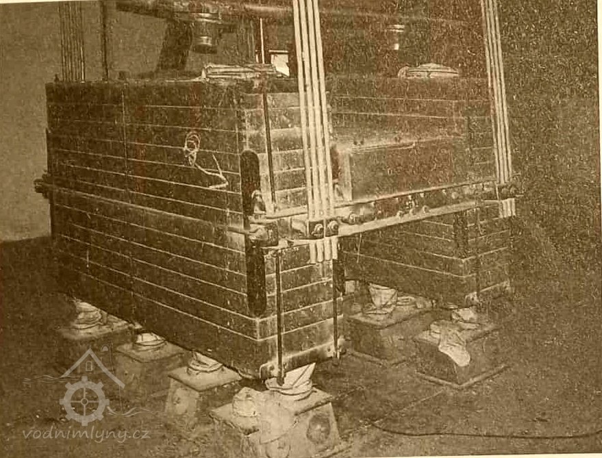 válcová stolice, litinová skříň, výrobek fa Prokop a Synové Pardubice z 30. let 20. stol., 2013, © David Veverka, (Prvky na obrázku: válcová stolice)