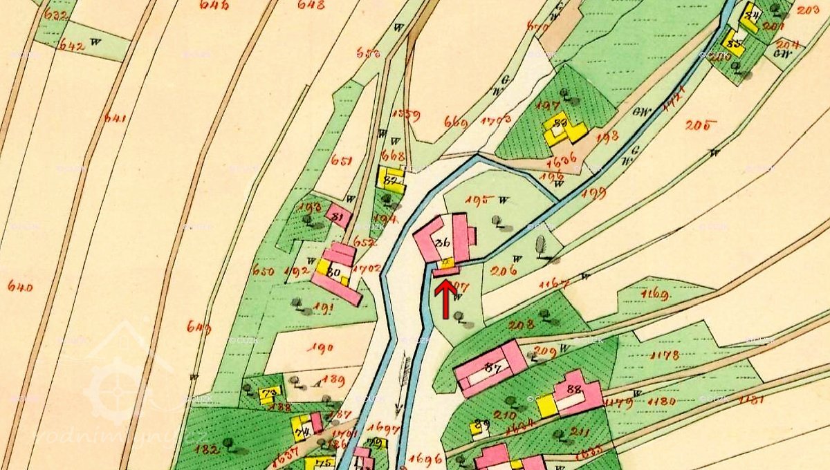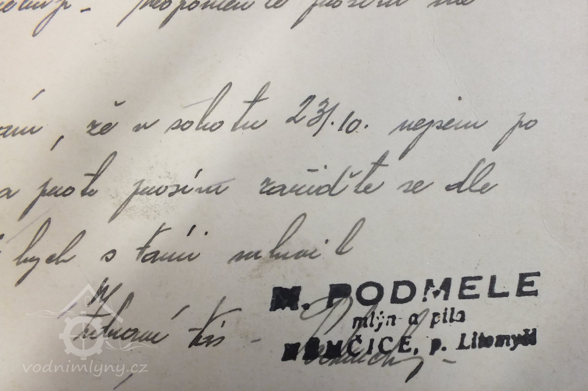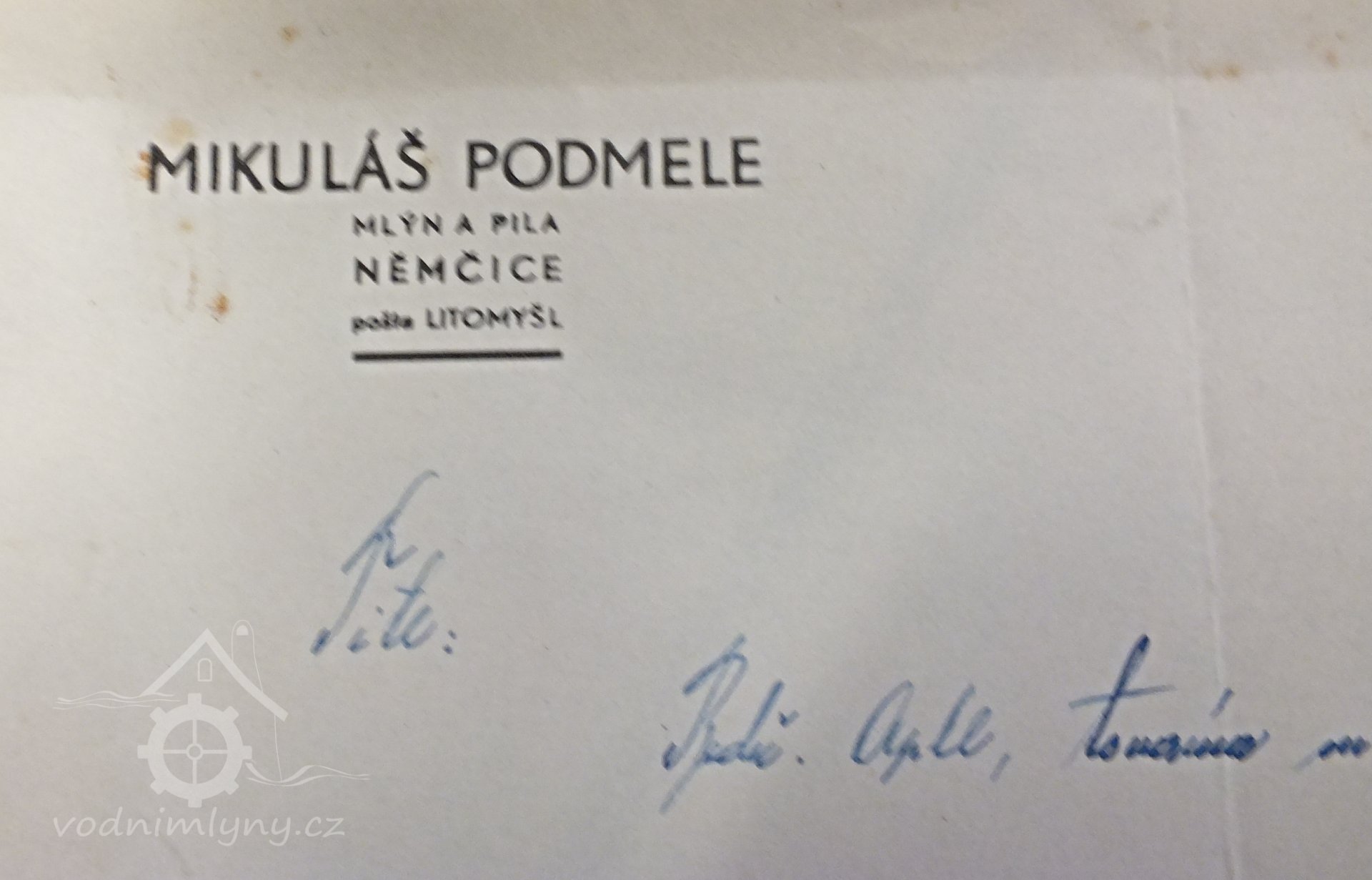 „Kolo přední na mlýn jest 5,4 m vys, 63 cm šir, hl. 25 cm, druhé na pilu má výšku 5,00 m, jinak rozměry stejné s kolem na mlýn.“